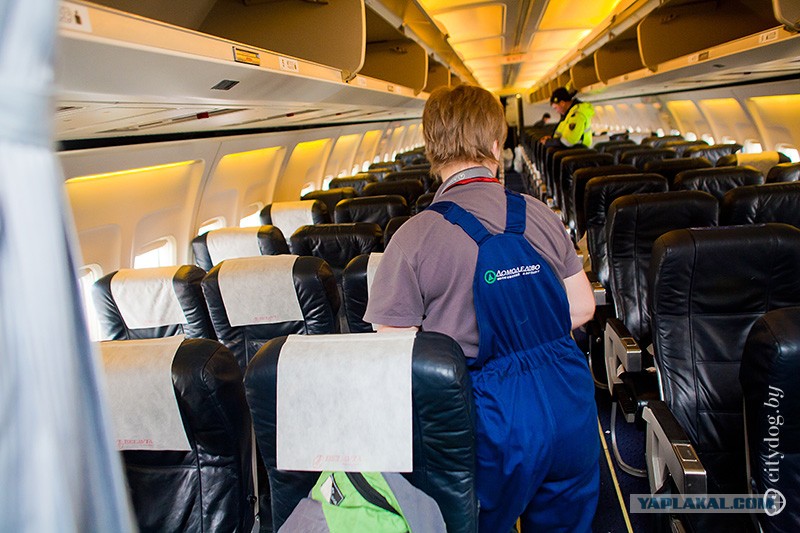 А вот и снова Минск. Заходим на посадку, в это время бортпроводницы еще успевают рассказать, что аплодируют обычно на туристических рейсах, но почему-то в момент, когда шасси касаются взлетной полосы, а не когда самолет остановился и все опасности позади. Пилоты аплодисментов совсем не слышат из-за шума двигателя, а вот бортпроводникам все-таки приятно. После остановки снова уборка салона, техники проверяют все системы. Самолет остается здесь же, на перроне, дожидаться следующего рейса.