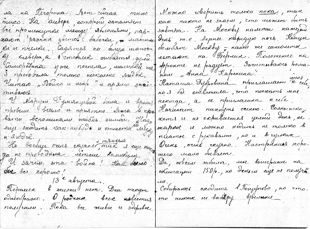 Дневник Зайцевой Любови, 1940-1941