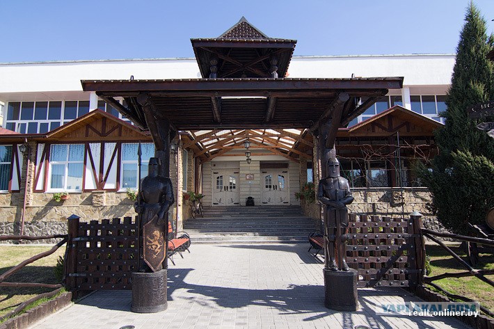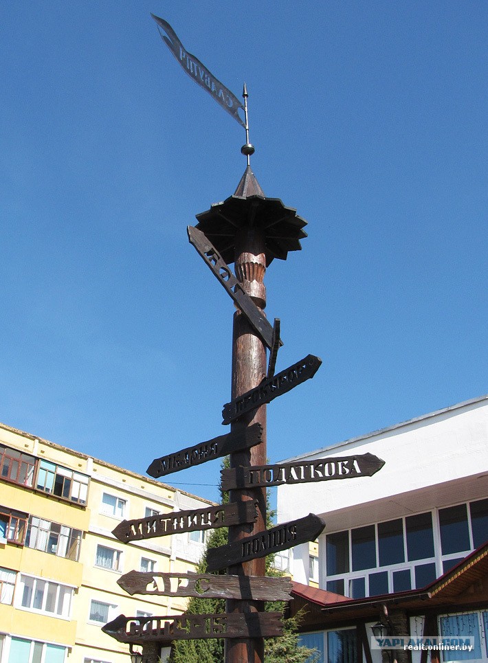 Вход в кафе украшают вполне по-эстонски выглядящие рыцари, рядом декоративный указатель, способный удовлетворить запросы любого гостя Славутича, в том числе незванного. Больница, налоговая, полиция, прокурор и загадочное СДПЧ-15. Верхняя стрелка с надписью «Бог» символично направлена вверх, а не в сторону местной церкви, как можно было бы предположить.