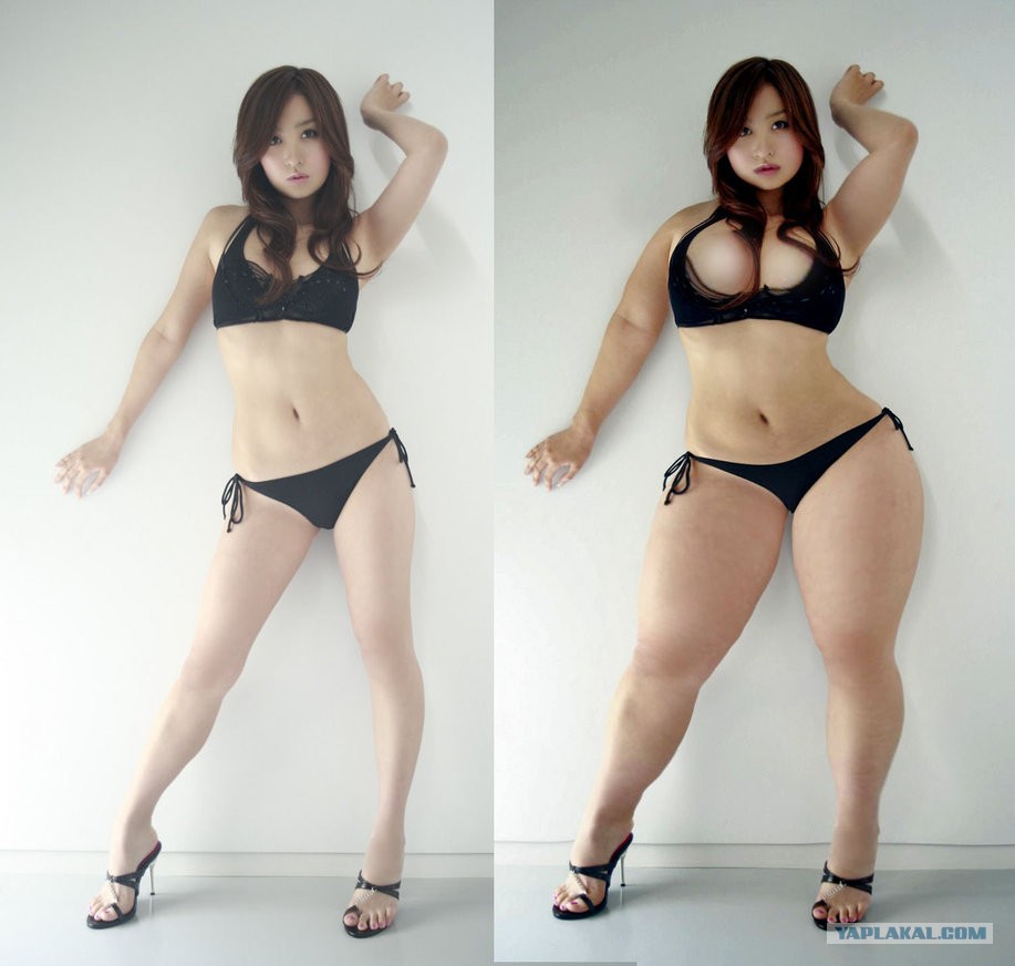 Ребята, что - впервые чрезмерную полноту что ли увидели? Оглядитесь по сторонам - как много вокруг пар, где женщина явно килограмм на 30 крупнее мужа. Обычное дело.