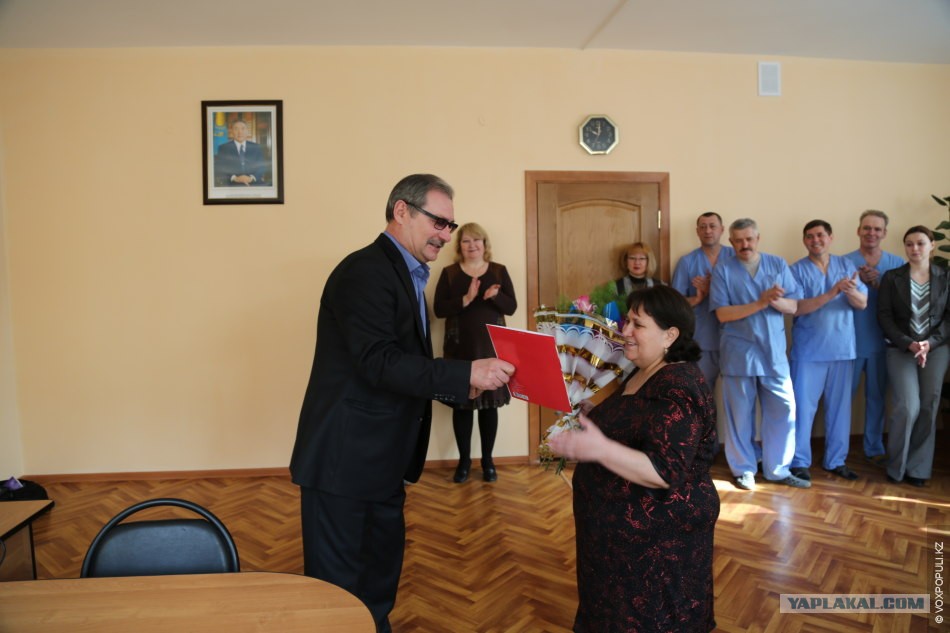 32) Людмилу Алексеевну на планерке в кабинете директора чествовал весь коллектив. Много говорили о ее безотказности, скромности и незаменимости. Впрочем, последнее качество можно смело отнести почти ко всем здешним сотрудникам, особенно к техникам-протезистам. В Казахстане не обучают специалистов такого профиля, и они поистине на вес золота. Зарабатывают техники неплохо (средняя заработная плата по предприятию неуклонно растет и составляет 82 тысячи тенге).