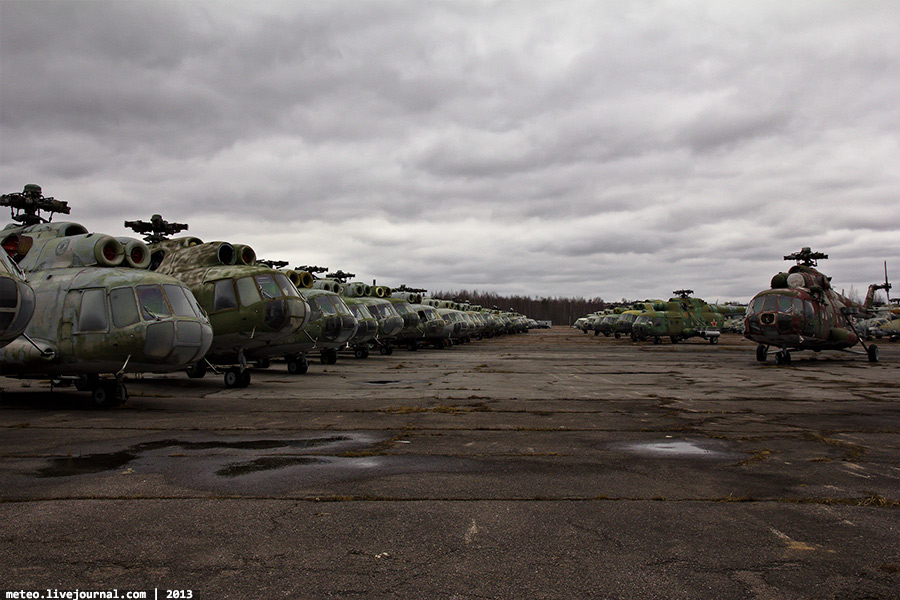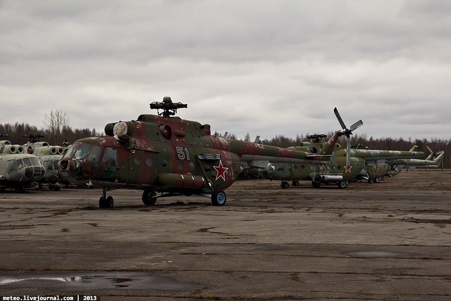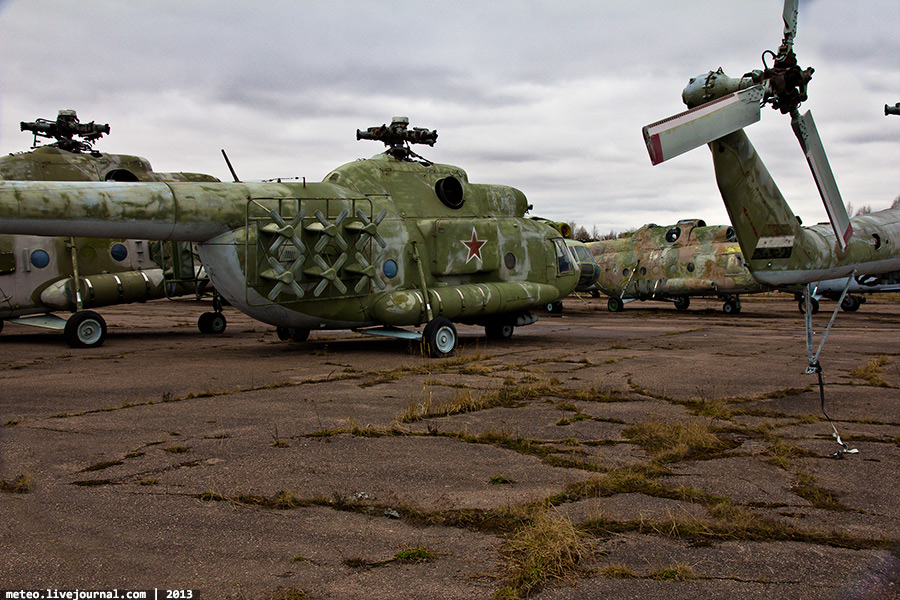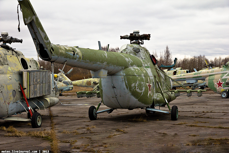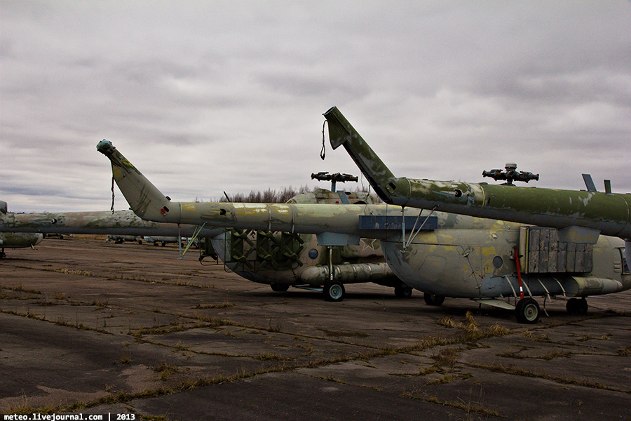 38. Ми-8МТ — последняя модификация вертолета, которая явилась логическим завершением перехода от транспортного к транспортно-боевому вертолету. Установлены более современные двигатели ТВЗ-117 МТ с дополнительной газотурбинной установкой АИ-9В и пылезащитным устройством на входе в воздухозаборники. Для борьбы с ракетами типа «земля-воздух» имеются системы рассеивания горячих газов двигателей, отстрела ложных тепловых целей и генерации импульсных ИК-сигналов. В 1979-1988 гг. вертолет Ми-8МТ принимал участие в военном конфликте в Афганистане.