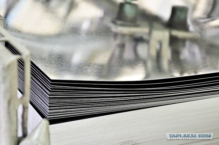Из сверкающих листов металла машина вырезает заготовки, сворачивает, заваривает.