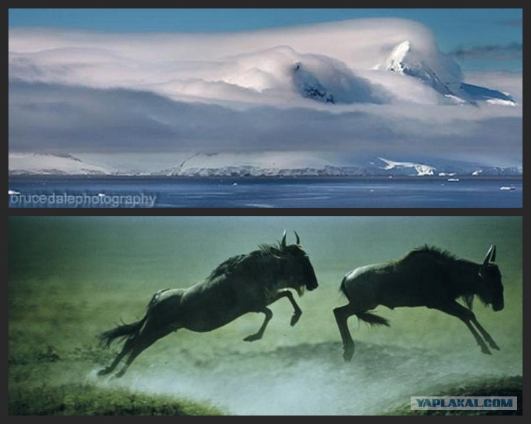 Немало у Брюса и снимков животного мира. От Аляски и Антарктиды (сверху) до Африки, где, как мы видим, какие-то рогатые зверушки играют в догонялки.