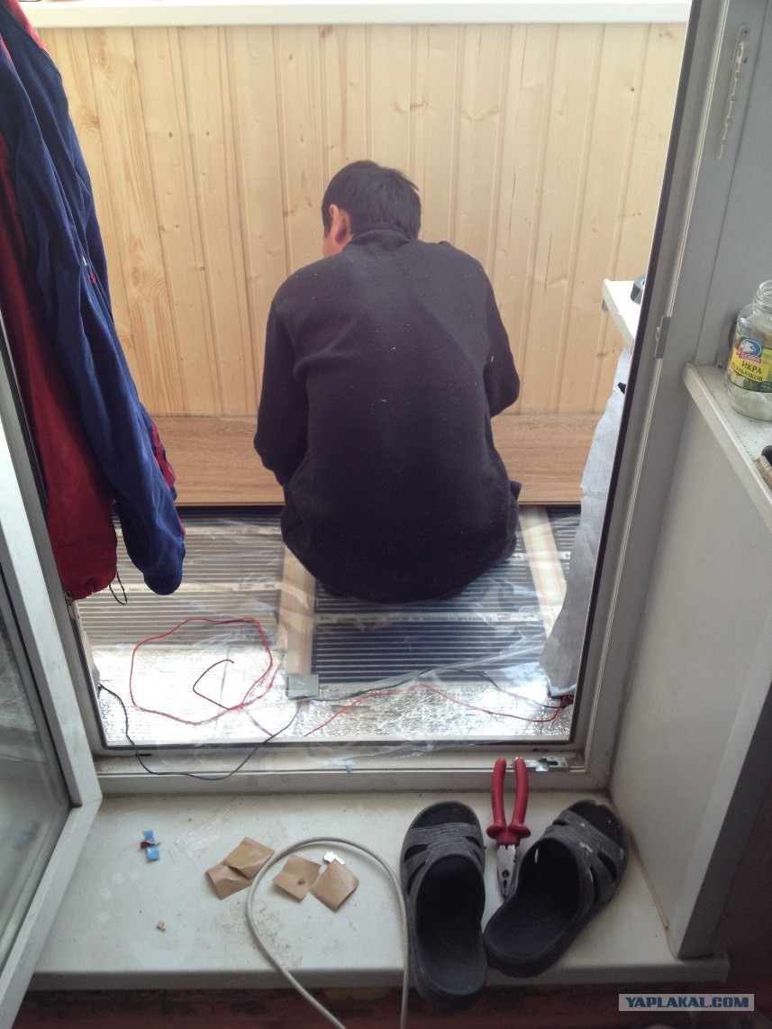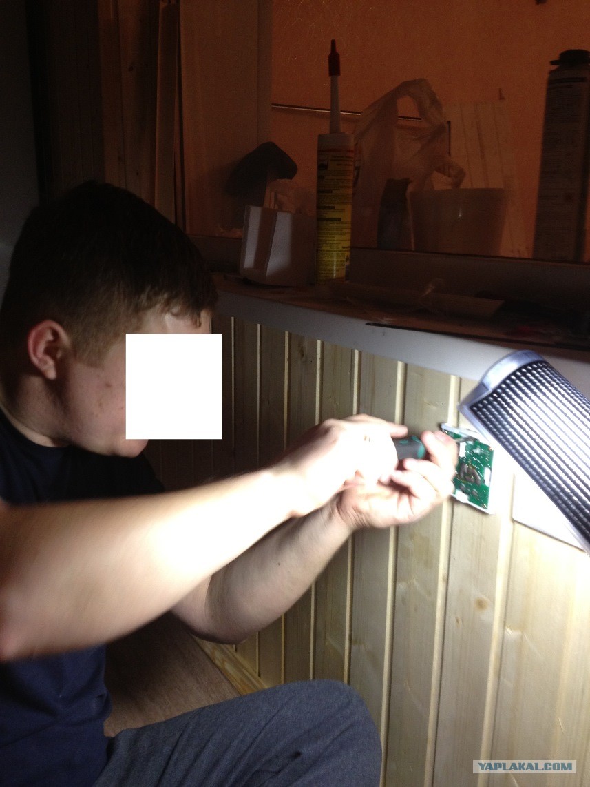 Последние штрихи, собираю терморегуляторы, включатели (которых на балконе никогда не было). Использую для освещения обычную настольную лампу)