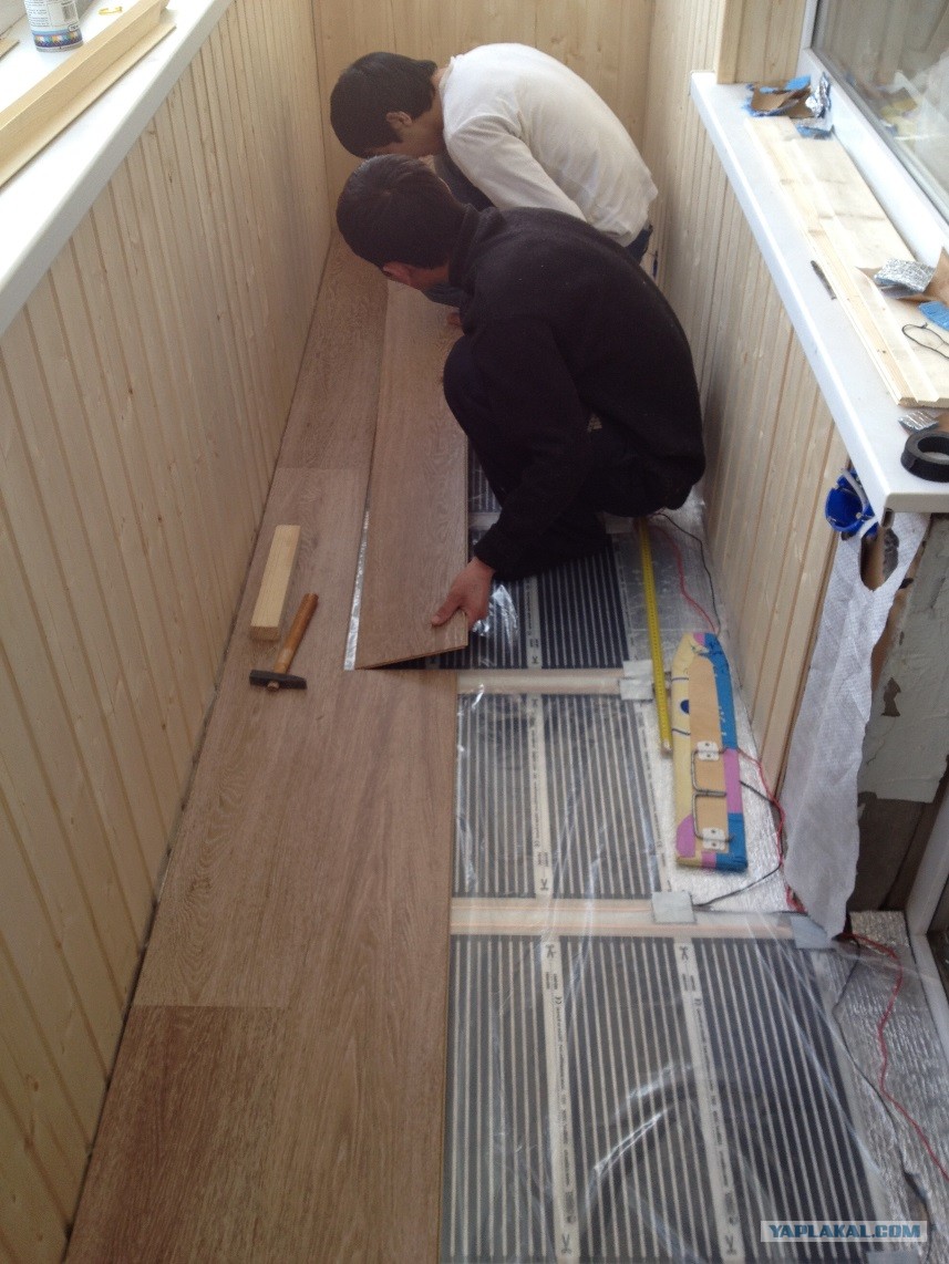 Укладываем ламинат) Работы по укладке ИК-полов делал сам впервые - всё очень просто и легко!!!