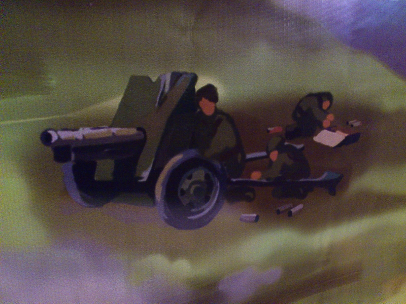 Наши отвечают. Здесь лиц не видно, так как по композиции пушка находится на дальнем плане.