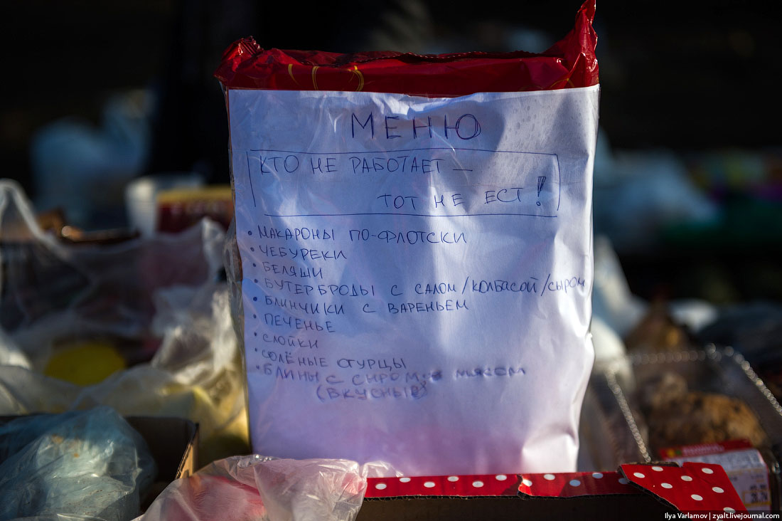 44. На блок-посту работает кухня. Вот меню. Все организовано жителями района.