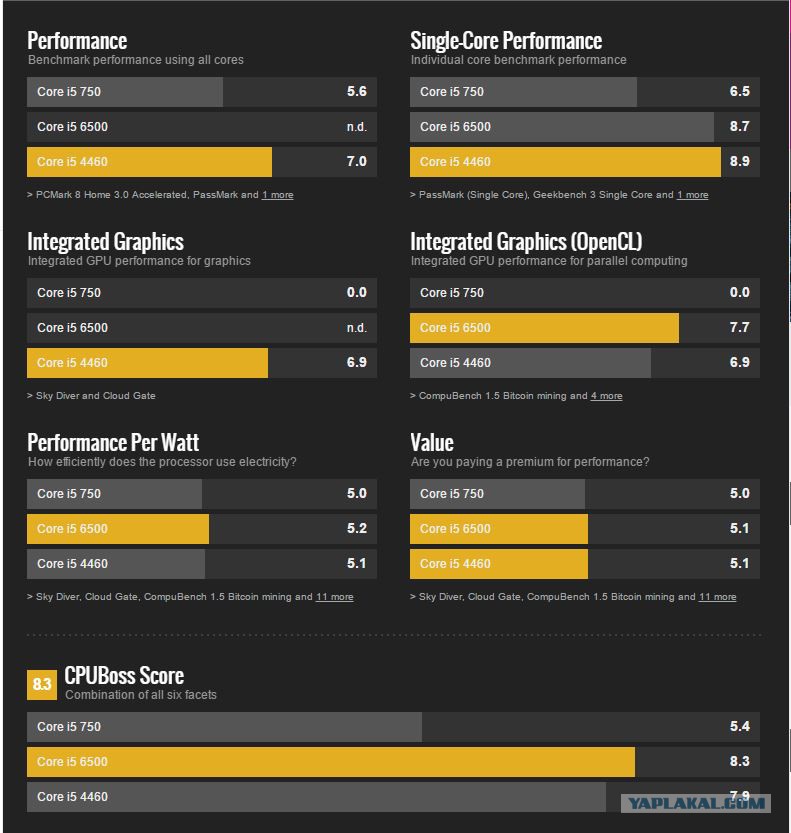 P.P.S. для проектировщиков в автокде сейчас собираем компы на i3 6300, т.к. i7 4790 тормозит в некоторых операциях, причем разница в производительности на крупных чертежах бешенная, на i7 полторы минуты, а та же операция на новом i3 - 15 секунд. Можно ли считать прирост производительности более чем в 6 раз? Конечно нет, ведь прирост считается по многим параметрам, а не по одному, но на глаз скажу - примерно в два раза произшел скачек опять, 5го поколения в отличии от 4го. Согласен что между 2рым и 4тым поколением разница маленькая. Особенно в ноутбуках.