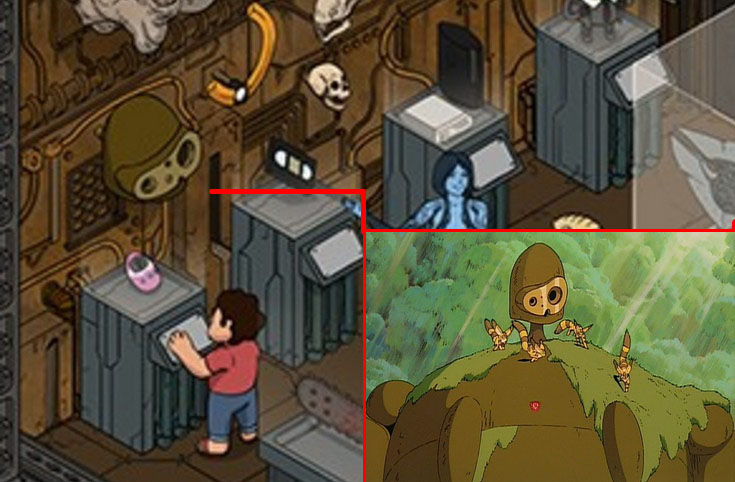 Хеллбой, тестовая камера из Half-Life, зал с колоннами из Матрицы, Хищник, Патрик Стар, Риддик, комбинация Порко Россо и малыша из Унесенных призраками, да их убьешся перечислять.
