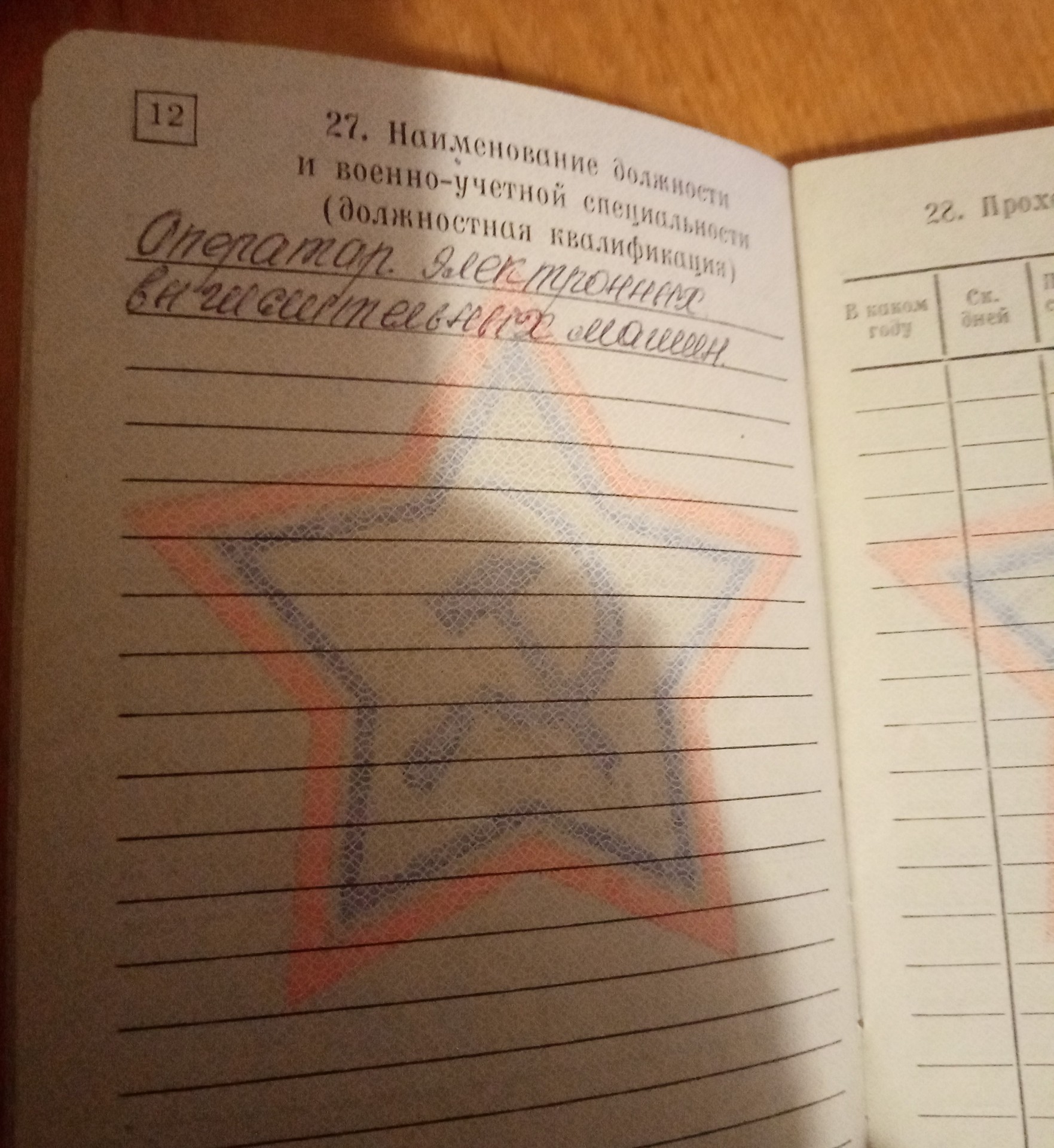 ВУС 908 - старшина батальона. 1,5 года на пенсии уже