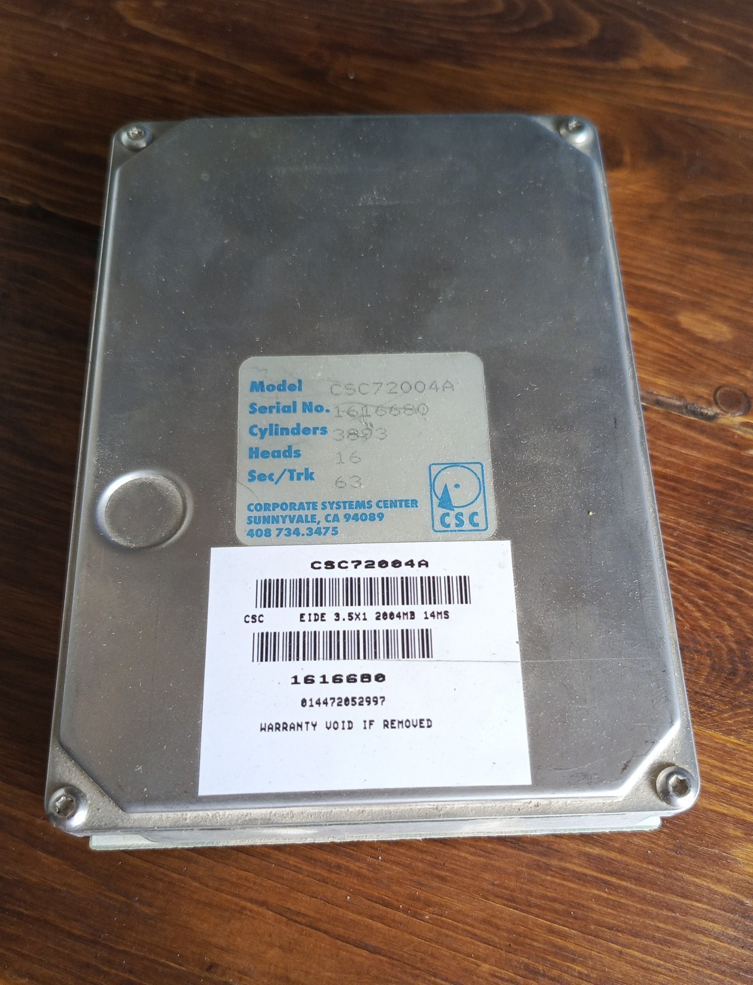 Дома вполне себе лежат еще рабочие IDE диски, есть фуджик на 10Гб. Есть абсолютно рабочий первый пенек (75Mhz) в сборе производства HP хД, так там жесткий еще в мегабайтах :)