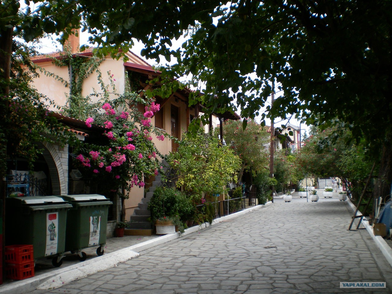 Кстати, вот. Греция, Уранополи. Пляжа не видно, контейнеры присуствуют.