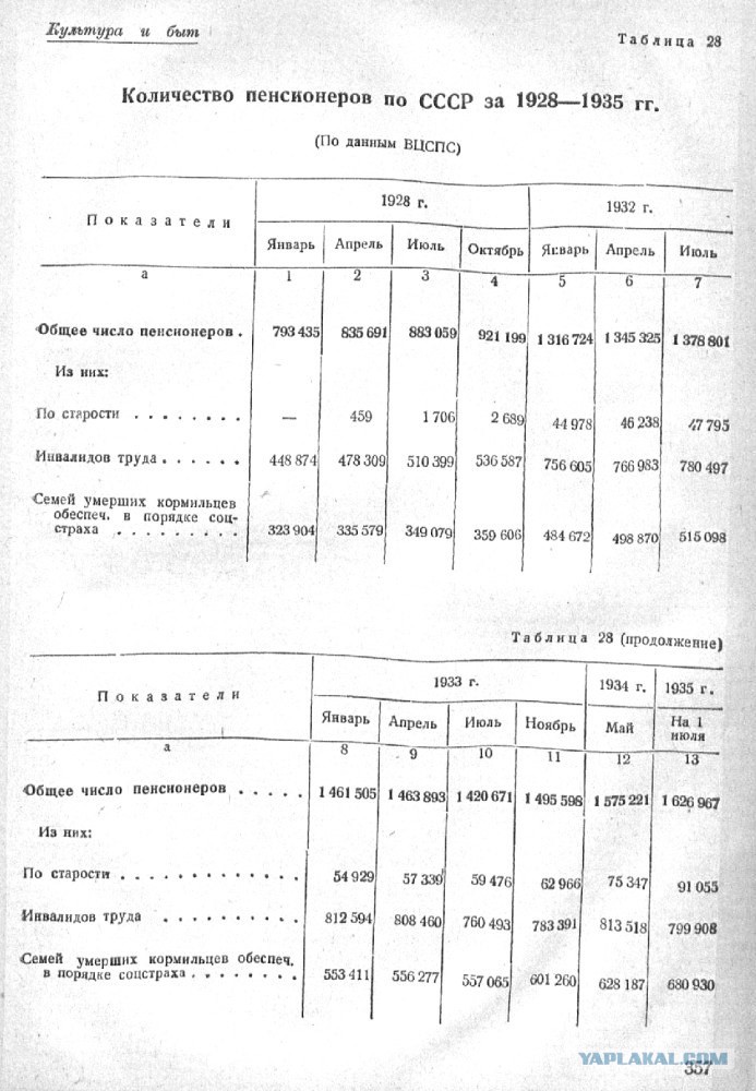 В 1935 году пенсионеров по старости, т.е. нынешний аналог выхода на пенсию по возрасту – 91 тыс. человек.