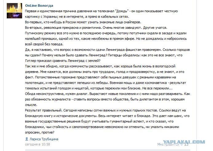 1. Очевидно, что это была отличная зацепка, из которой раздули скандал, чтобы придавить оппозиционный Дождь. Они единственные практически, которые показывают объективную картинку, включая всякие дачи чиновников.
