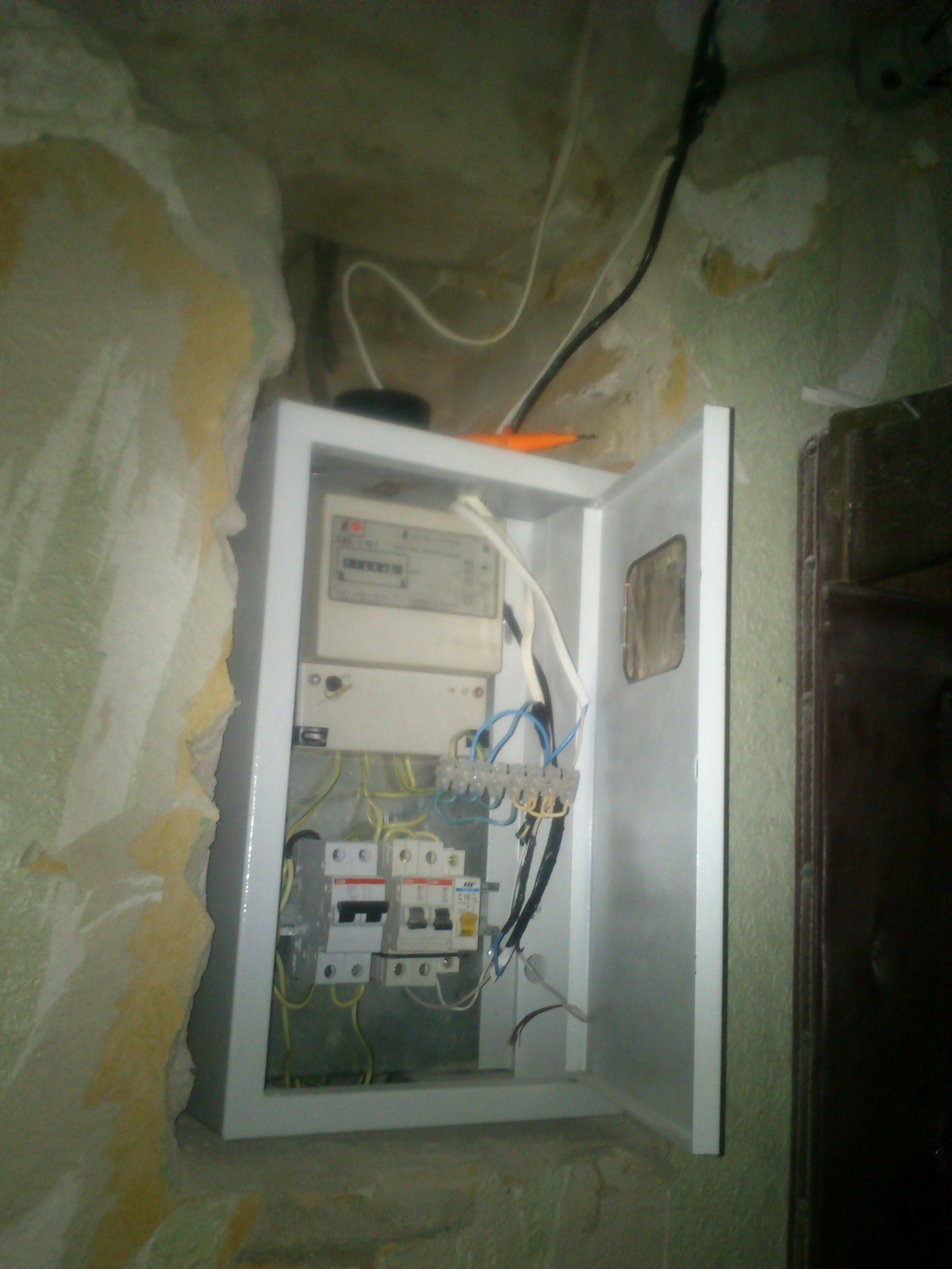 Эл. щит можно не крепить пока до него не доберутся маляры, оставить висеть на проводах, тем самым сделав его в будущем вровень со стеной.