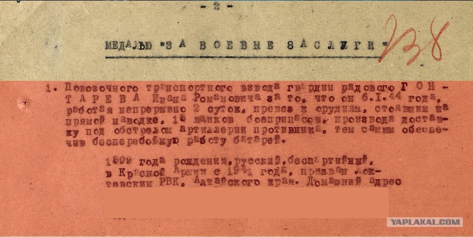 Дата подвига: 06.01.1944 Медаль «За боевые заслуги»