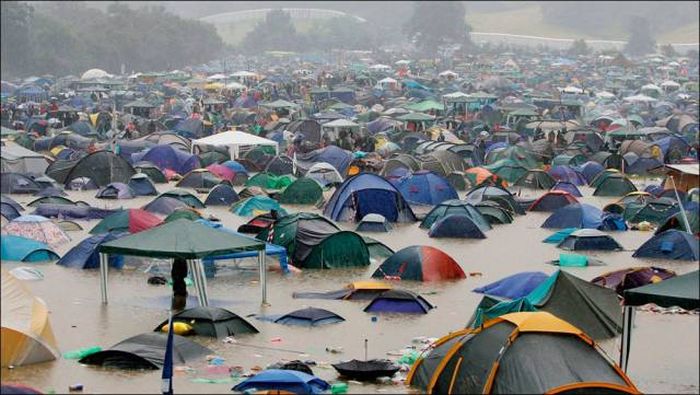 туристический лагерь после дождя