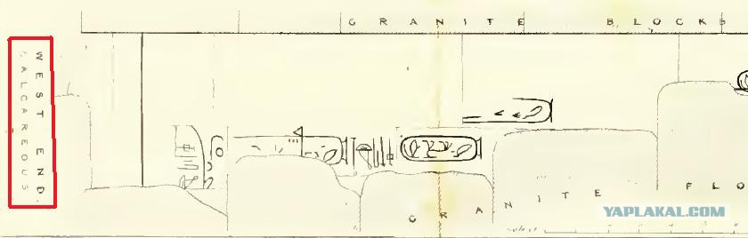Во-вторых, метки каменоломен. Красная Пирамида царя Снофру (для справки: Снофру - это отец Хеопса, а Красная Пирамида - третья по величине пирамида после Хеопса и Хефрена).