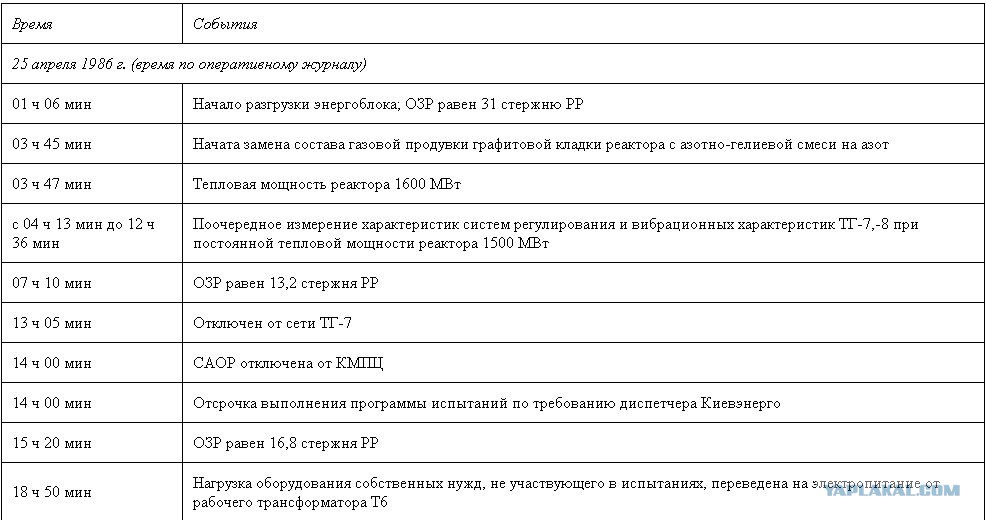 Там операторы нарушили всё, что только можно было нарушить. Когда смена заступила, он уже был в критическом режиме. А когда на следствии спросили, почему не предприняли никаких действий для вывода из этого режима, а наоборот, начали испытания, операторы смены сказали, что это не первый раз было, и они решили, что и в этот раз пронесёт, и вообще, "ничего страшного".