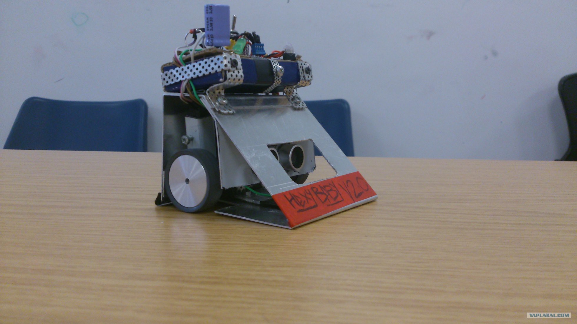 А я пару лет назад, в универе, делал такую фигню : видит, слышит, едет. Размеры : 10см х 10см х 10см