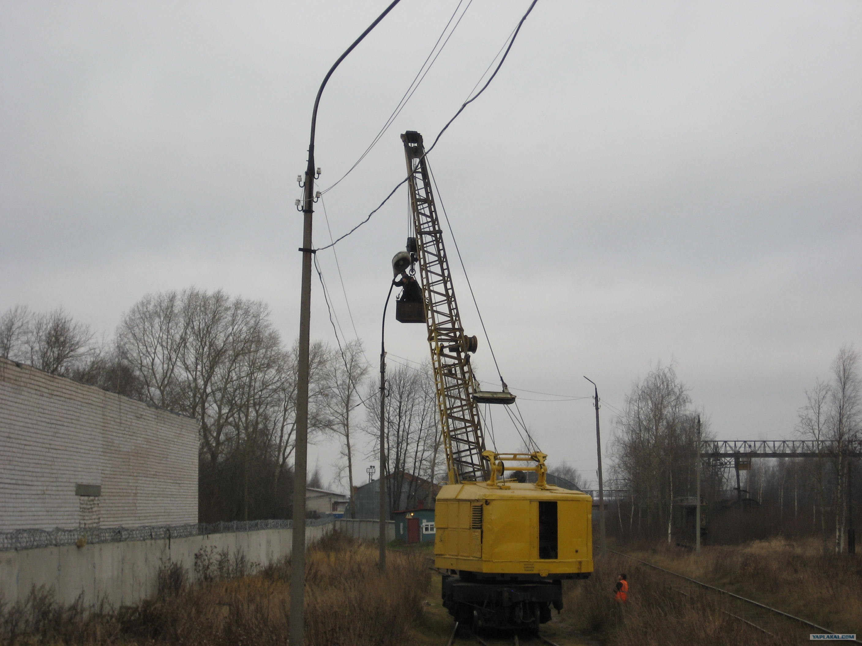 так в Вологде с помощью ковша жд крана меняют лампочки !