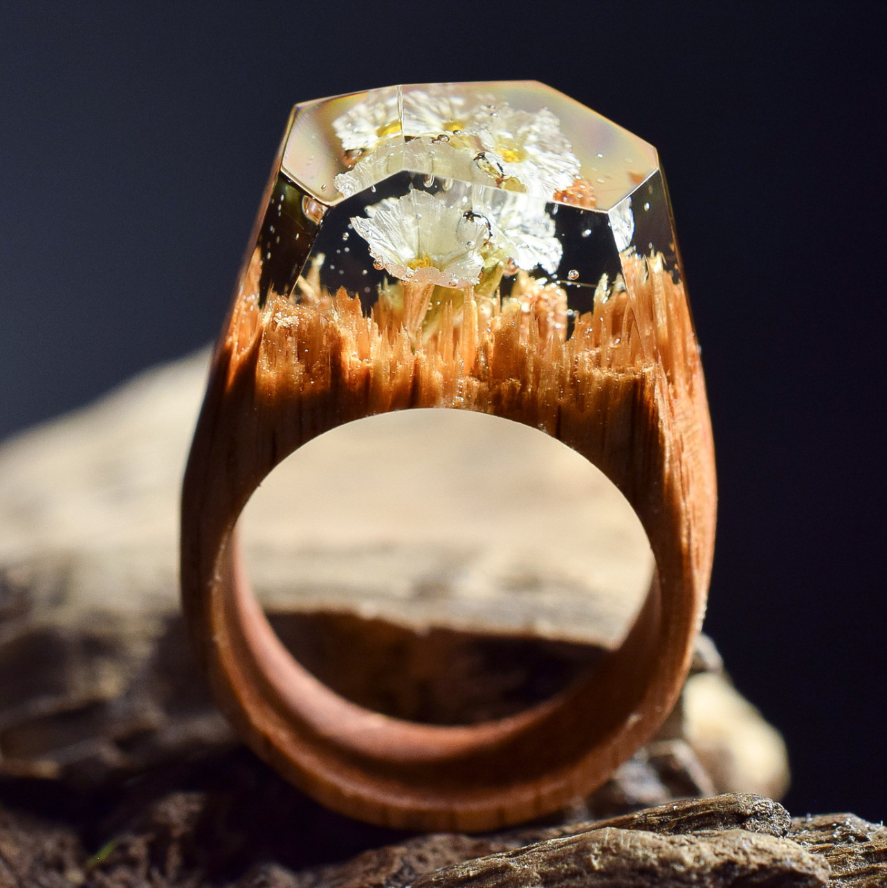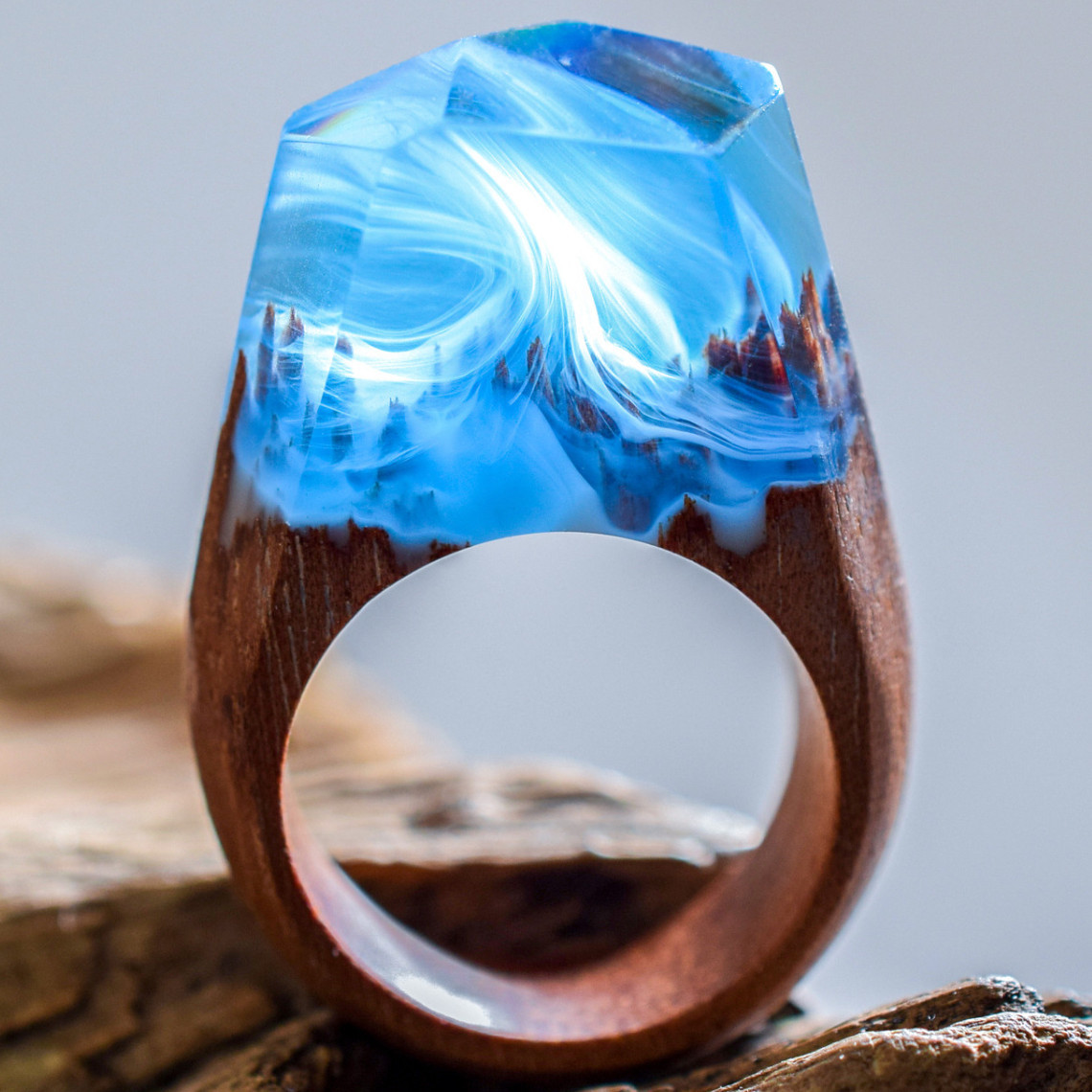 Натолкнулся в подборке картинок на нашем ЯПе на кольцо. Очень необычное. Заинтересовался, поискал в инете и нашел целую кучу подобных красотуль. Посмотрите, какие необычные деревянные колечки. В каждом живет свой мир, где-то весна, где-то цветы, где-то вода, а где-то ночь.… Каждое уникально в своей красоте.