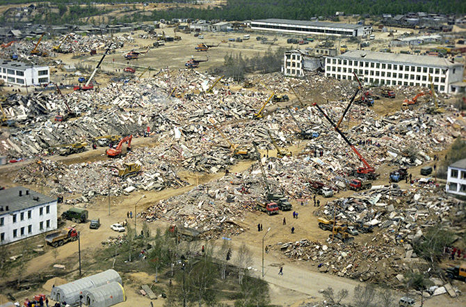 Помню, как вещи туда всем Союзом собирали. У друга отец туда ездил на разборы завалов, говорил потом, что видел, как поехал крышей крановщик, который поднял бетонную плиту при разборе школы, а под ней был целый класс детей - так же, рядами, как сидели...