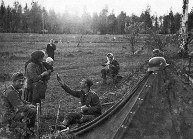 2. Немецкий солдат делится своим пайком с русской матерью с ребенком, 1941 г