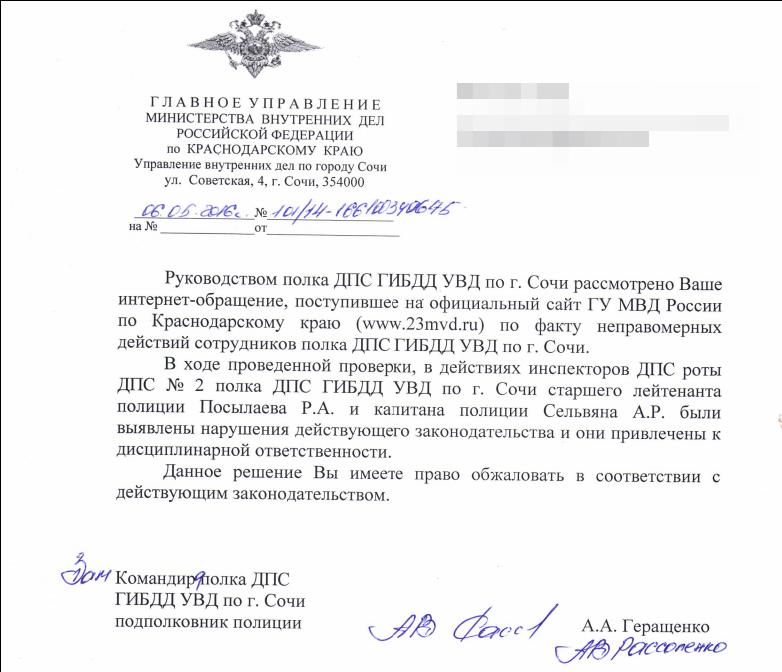 ДПС вымогает деньги у туристов города - курорта Сочи (пришел ответ)