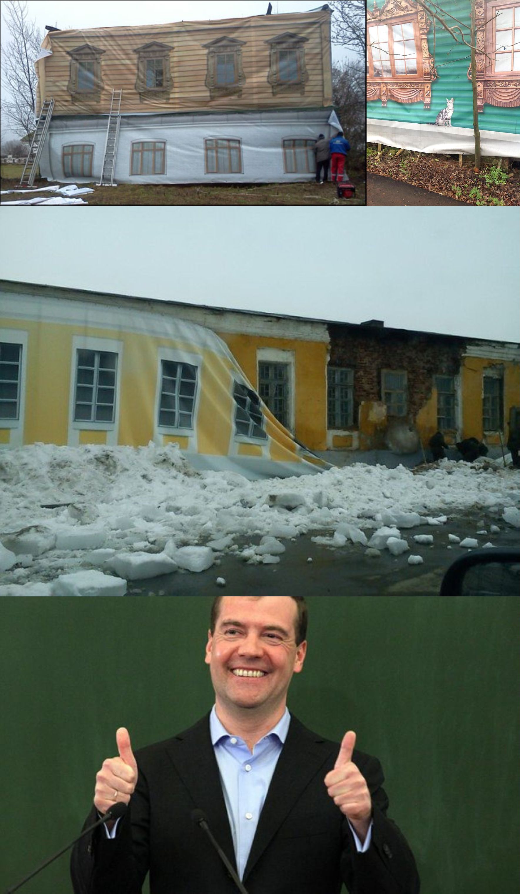 В каком-то советском кино было: тролль-самоучка нарисовал на стене арку, а над ней знак "кирпич". Какой-то водила въехал в эту "арку" и его ещё и менты нахлобучили за въезд под "кирпич"... gigi.gif