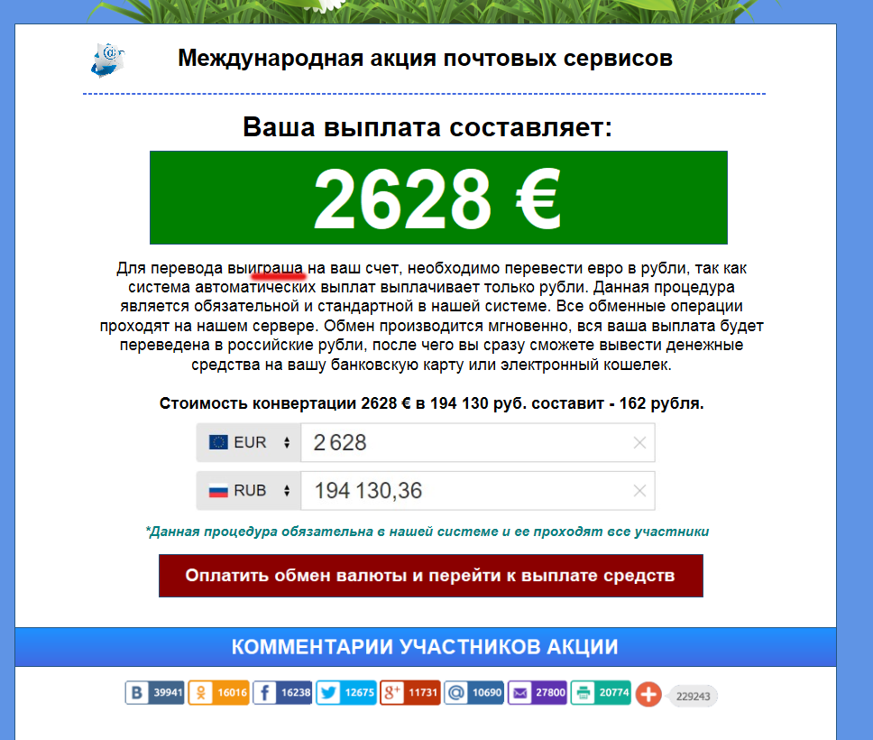 Молодец! Возьми пирожок с полки. Таких наивных лохотронов в сети до хера и больше, все как под копирку сделаны, везде просят перевести от 150 до 500 рублей за разные конвертации, подтверждения своей личности и прочей фигни по выбору лохотронщика. Ведутся на эту хрень только выдающиеся ЛОХИ.