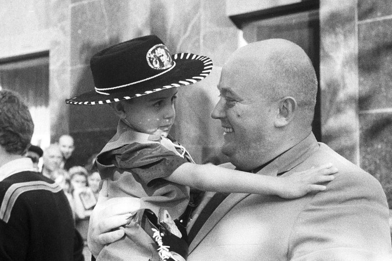 38 Советский актер Евгений Моргунов с юным иранским актером Рафни Магомед-Реза на IV Международном кинофестивале в Москве, 1965 год