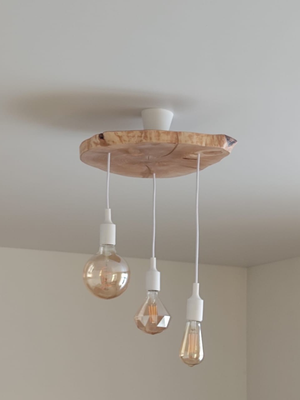 Предвосхищаю вопрос цены, спил  2000 рублец, патроны 500р, провод ретро рублей 300, драйвер рублей 200, лента, профиль, воск из остатков. Цепь рублей 200. Лампочки по 120р. Как то так, доклад окончен. Конструктивная критика принимается)