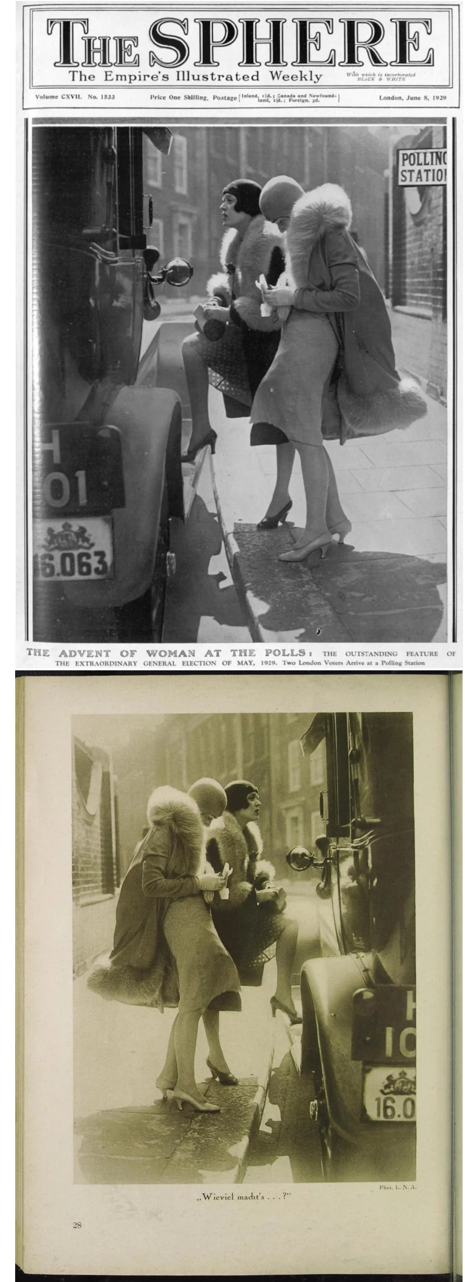 Сразу смутил британский герб на машине. При тщательной проверке выяснилось что машина лондонское такси, год съемки 1929. Степень социальной ответственности женщин не определен