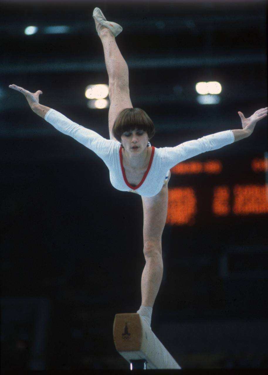 53 Участница олимпийских игр в Москве выступает на бревне, 1980