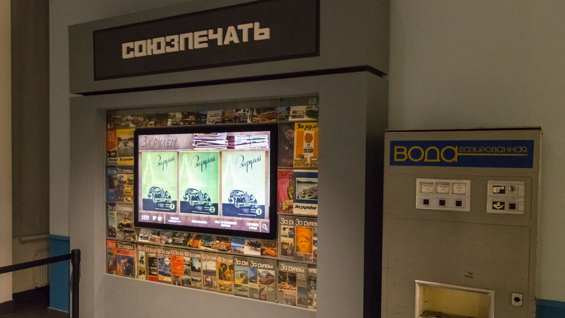На всех этажах множество мультимедийных стендов - например архив журнала "За рулем"