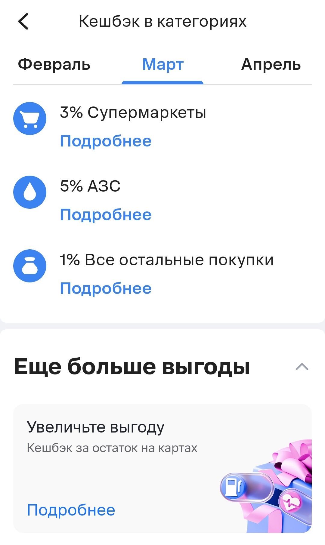 Ну, кстати, у сбера в марте все совсем печально с кэшбеком. Обычно на транспорт и такси было 7-10%,красота, образование - 5%,а сегодня максимум 3% предложил.