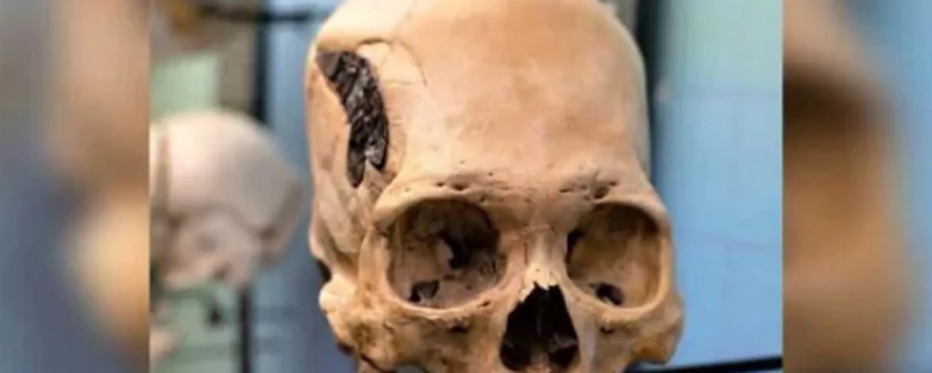 Череп древнего воина с металлической пластиной (Фото)
