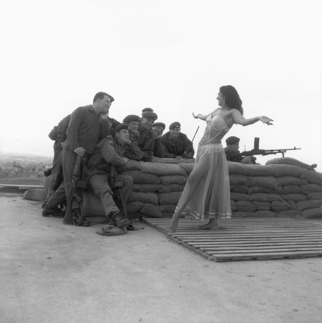 Танцовщица живота из Миддлсекса развлекает британских солдат на Кипре, 1964 год.