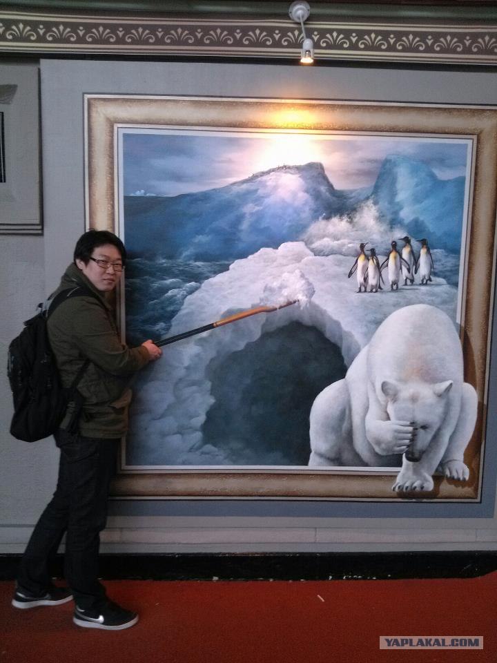 А вообще, большинство - ночём. на оптическую иллюзию здесь не тянет практически ничего. Просто графити "с приколом". А те, что используют доп-декорации, так и вообще из бродячего шапито кажись изъяли...