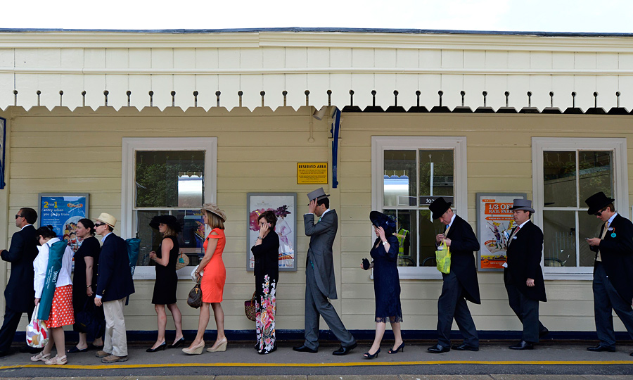 Посетители скачек прибывают на железнодорожную станцию в Аскоте. © Darren Staples/Reuters