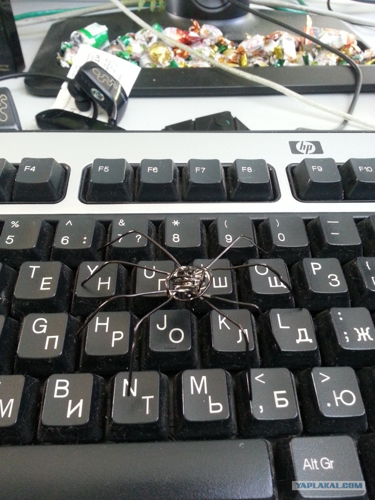 Блин, я бы за такие шуточки вам... у меня арахнофобия, я панически пауков боюсь. Муж однажды прикололся, паучка плюшевого мне на кровать посадил, потом полчаса успокаивал. Больше не шутит так. У нас даже паутину снимать пылесосом по углам входит в его обязанности, бо я этих тварей на дух не переношу.