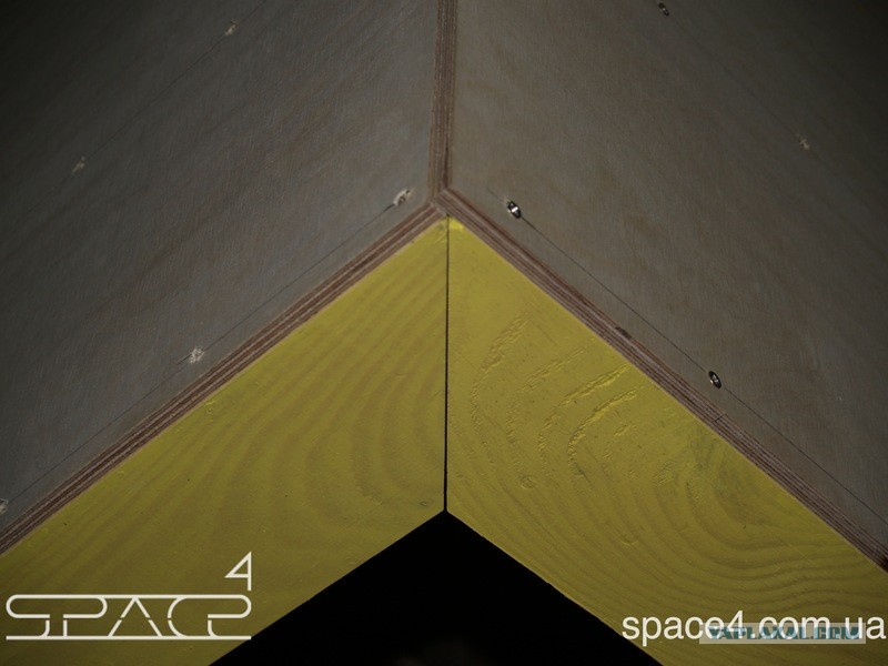 Обшивка крыши завершена. Обратите внимание, что размеры листов не одинаковы. Один от другого отличается на толщину фанеры.