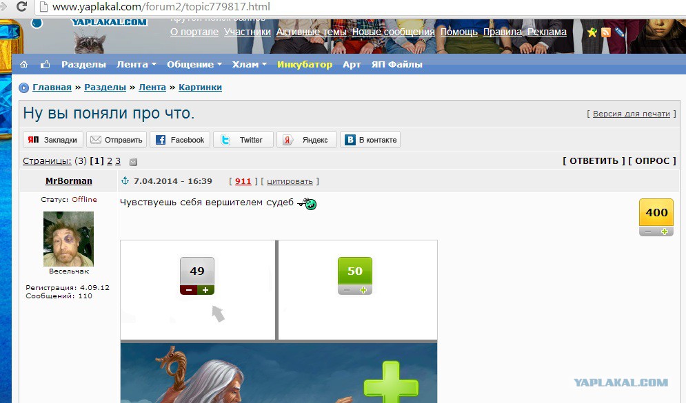 Ну а суть поста в "магическом" моменте вывода темы на главную. Где ты решаешь минусануть или плюсануть. Своеобразное решение судьбы поста. Ну как-то так...