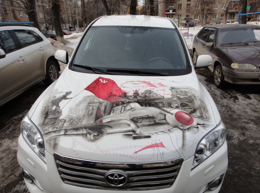 ну в Самаре достаточно много дорогих машин с различными наклейками ездят ( в преддверии 9 мая)
