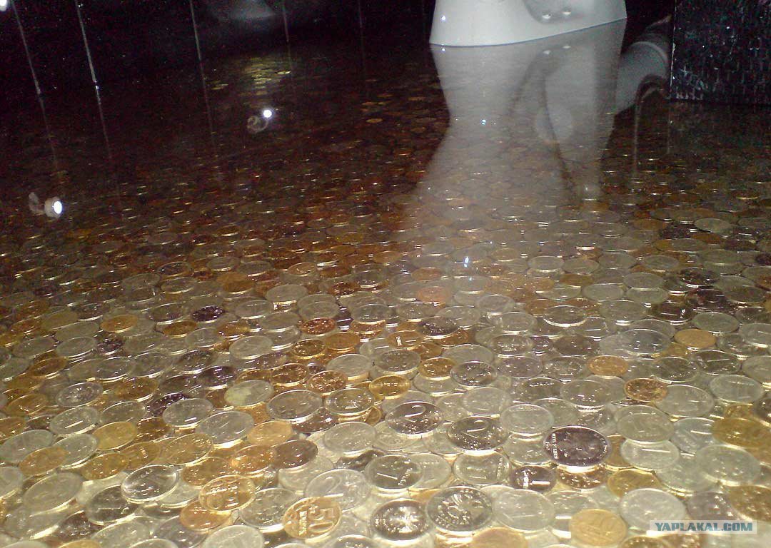 сколько будет стоить такой пол, мм. диаметр рубля 2 см. Считаем квадратный метр: в длину 50 монет, в ширину немного больше (узор, как вижу, со сдвигом), пусть 60 монет. Выходит, квадратный метр такого пола стоит 3000 рублей, плюс клей, плюс эпоксидка. Да он и вправду золотой.