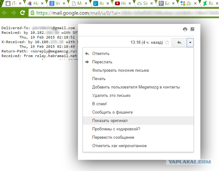 cranky.gif Корреспондент наивный на редкость, если верит в то что "тот же" Gmail скрывает IP адреса отправителя. Большинство почтовых сервисов их показывает как раз таки.