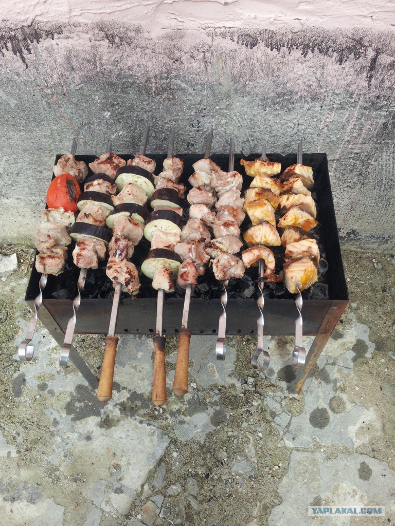 -Жарю шашлык - слева мясо с овощами, справа осётр.... Очень вкусно было.