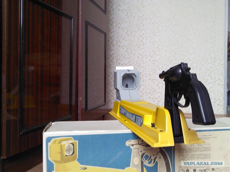 вспомнил что то.. тир такая игрушка была, фото не нашел нигде. короб такой, с одной стороны пистолет, с другой под стеклом мишень вставлена. стреляешь, в мишени дырка появлялась. как сейчас помню, 16 рублей стоила) я два месяца на нее в первом классе копил..копилку сделал специально..а всё потому что интересно было, как это дырки в мишени появляются бесконечно. купил таки, посмотрел на механизм- тяга от курка и иголка за мишенью закреплена. и всё интерес пропал)